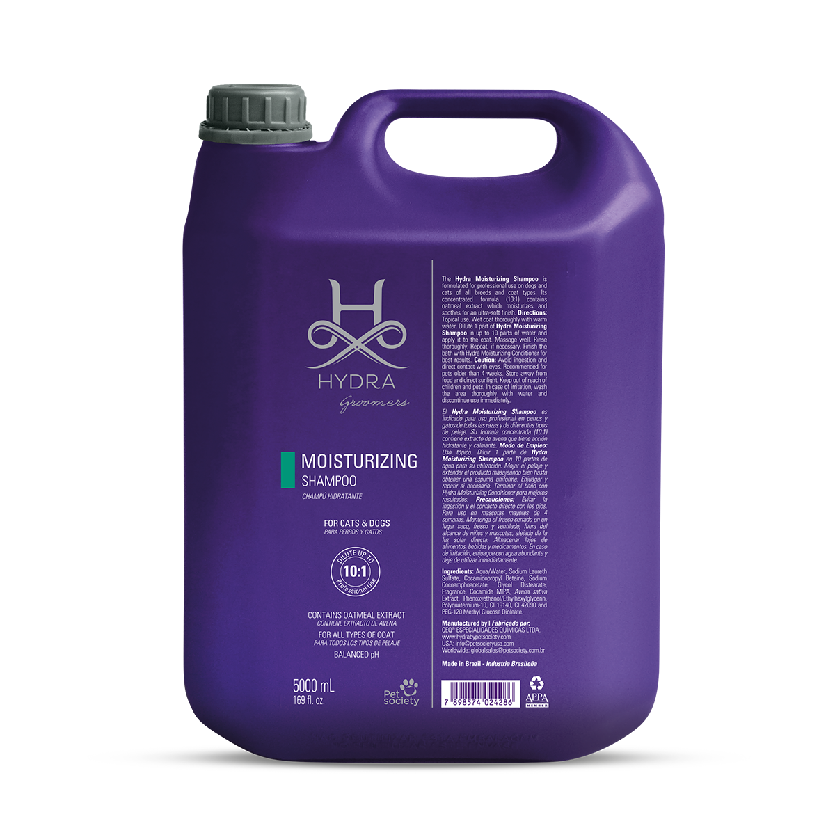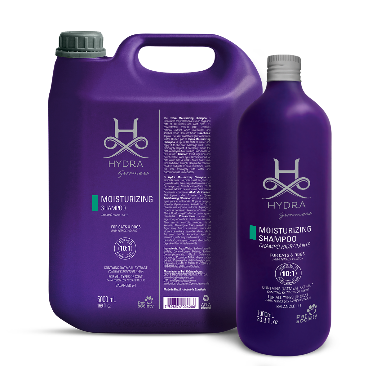 How to use: Topical use. Wet coat thoroughly with warm water. Dilute 1 part of Hydra Moisturizing Shampoo in up to 10 parts of water and apply it to the coat. Massage well. Rinse thoroughly. Repeat, if necessary. Finish the bath with Hydra Moisturizing Conditioner for best results. Use the diluted product within 48 hours.