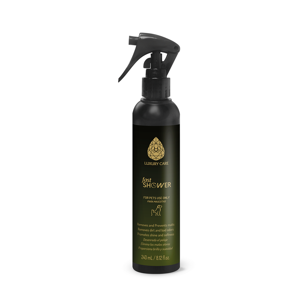 Directions: Apply Fast Shower to the coat and lightly spread with the hands and proceed with brushing out the coat. Suitable for dogs and cats of all breeds and coat types.